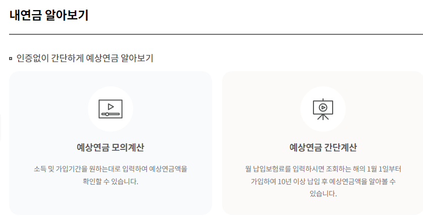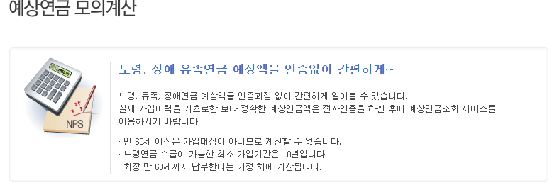 만약 공인인증서가 있다면 지금까지 납부한 국민연금을 기준으로 좀 더 정확한 수령액을 알아볼 수 있습니다.