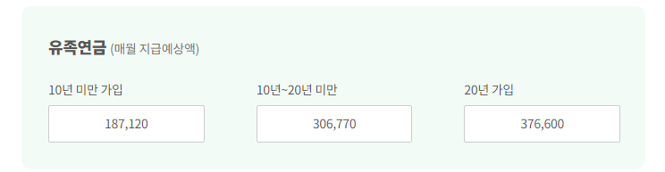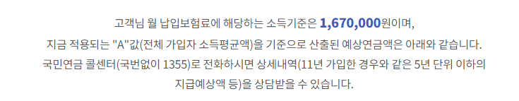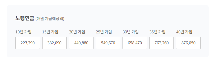 그럼 위의 화면처럼 가입기간 별로 국민연금 수령액을 확인할 수 있습니다.