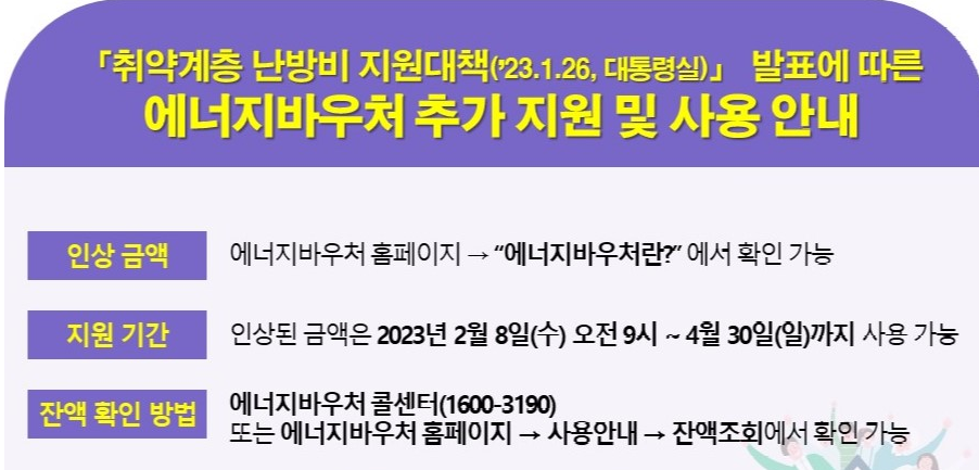 겨울철 난방비 걱정하시는 분들 많으시죠? 저소득층 및 취약계층 가정에서는 이러한 부담감이 더욱 클 텐데요. 정부에서는 이를 완화하고자 에너지바우처 지원을 확대했습니다.