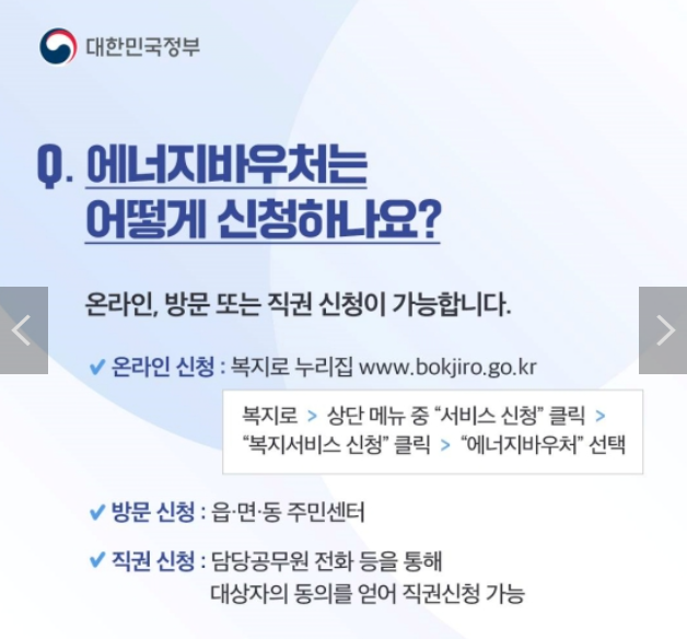 하지만 아직도 에너지바우처 제도에 대해 모르는 분들이 많습니다. 따라서 오늘은 에너지바우처 신청방법부터 에너지바우처 잔액조회 하는 방법까지 알려드리려고 합니다.