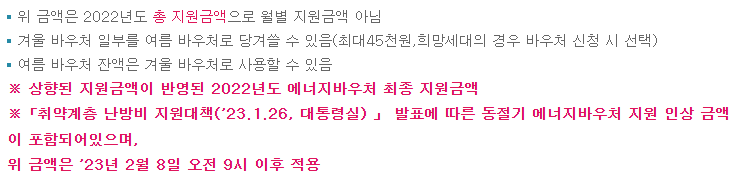 겨울 바우처 일부를 여름 바우처로 당겨 쓸 수 있으며 여름 바우처 잔액은 겨울 바우처로 사용할 수 있습니다.