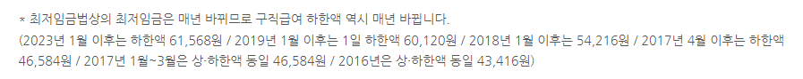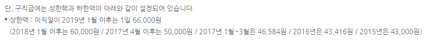 2023년 상한액은 66,000원 입니다. 올해 2023년에는 최저시급이 상승하여 법정 하한액 60,120원을 초과하므로 올해는 최저임금 80% 인 61,568원이 하한액입니다.