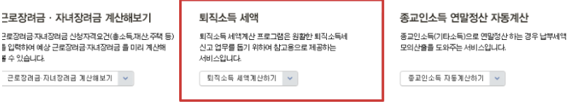 퇴직금 세금 계산을 개별적으로 하는 것은 복잡하고 어렵습니다. 다행히도 국세청 홈택스에서는 복잡한 퇴직금 세금계산을 쉽게 할 수 있도록 자동계산을 제공하고 있습니다.