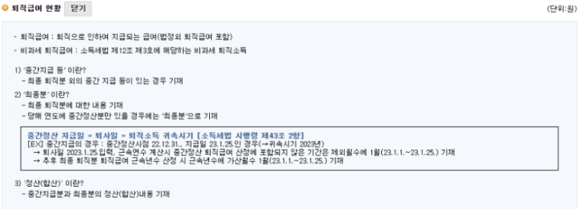 이후 소득자의 인적사항, 퇴직금 현황, 근속 연수 등의 세부 정보를 입력하면 됩니다. 특히 귀속 연도는 퇴직금 세금을 계산하는 데 있어 매우 중요한 부분이기 때문에 정확하게 입력해야 합니다.