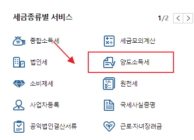 이렇게 선택하면 양도소득세 자가진단 페이지로 이동합니다.