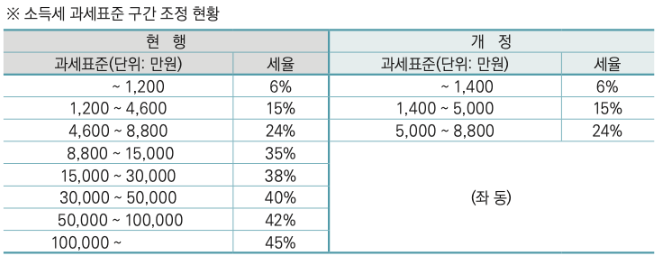 - 1,400 ~ 5,000 이하는 15% 종합소득세율이 적용됩니다.