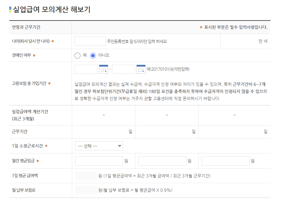 위의 바로가기를 클릭하여 실업급여 모의계산 페이지로 쉽게 이동할 수 있습니다.