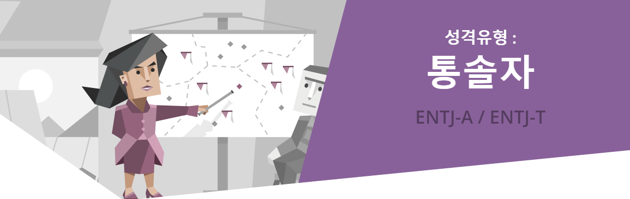 ENTJ - 대담한 통솔자 입니다. 대담하고, 상상력도 풍부하며 강한 의지를 갖는 타입으로 타고난 리더라고 불리는 유형입니다. 분석적이고 객관적이며 자기주장이 강한 편입니다.